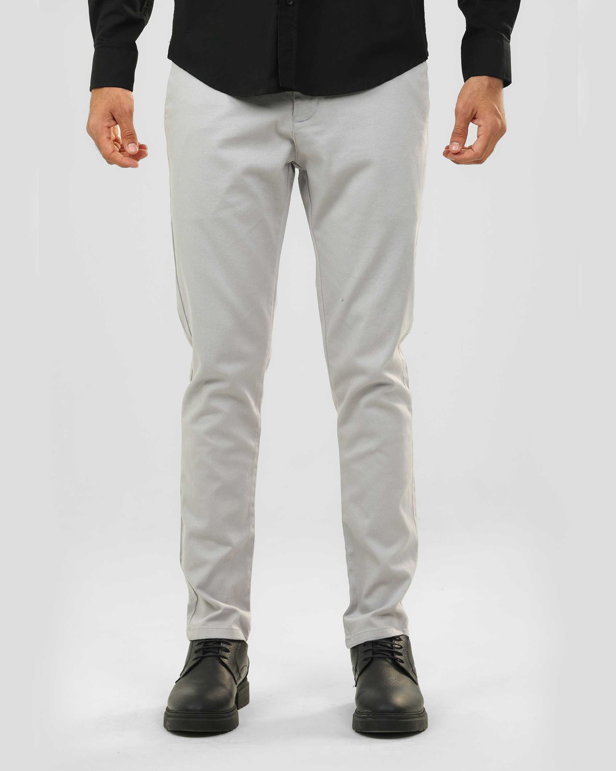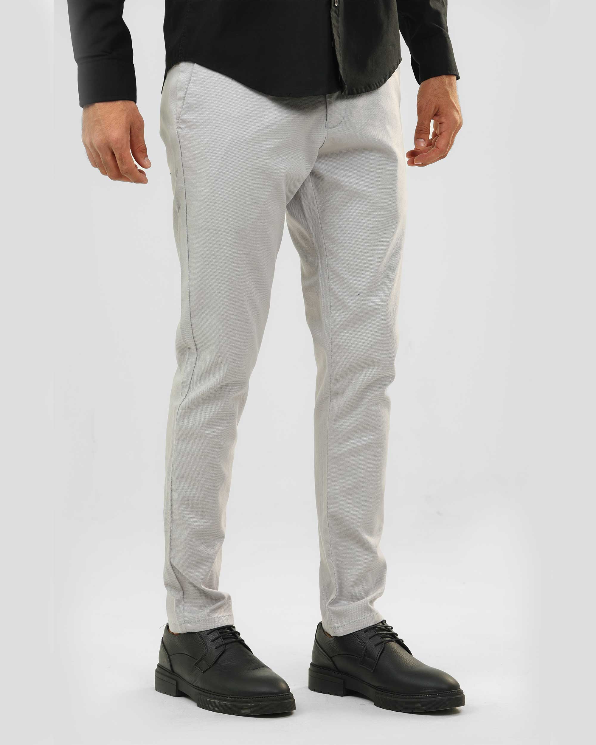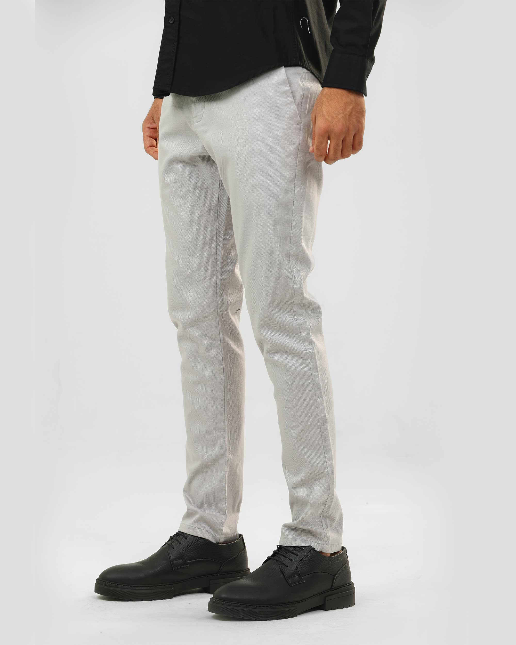 بنطلون تشينو كلاسيك، مصنوع من قماش جبردين بيكا، وجيوب خلفية وسحاب وزر علوي للإغلاق.