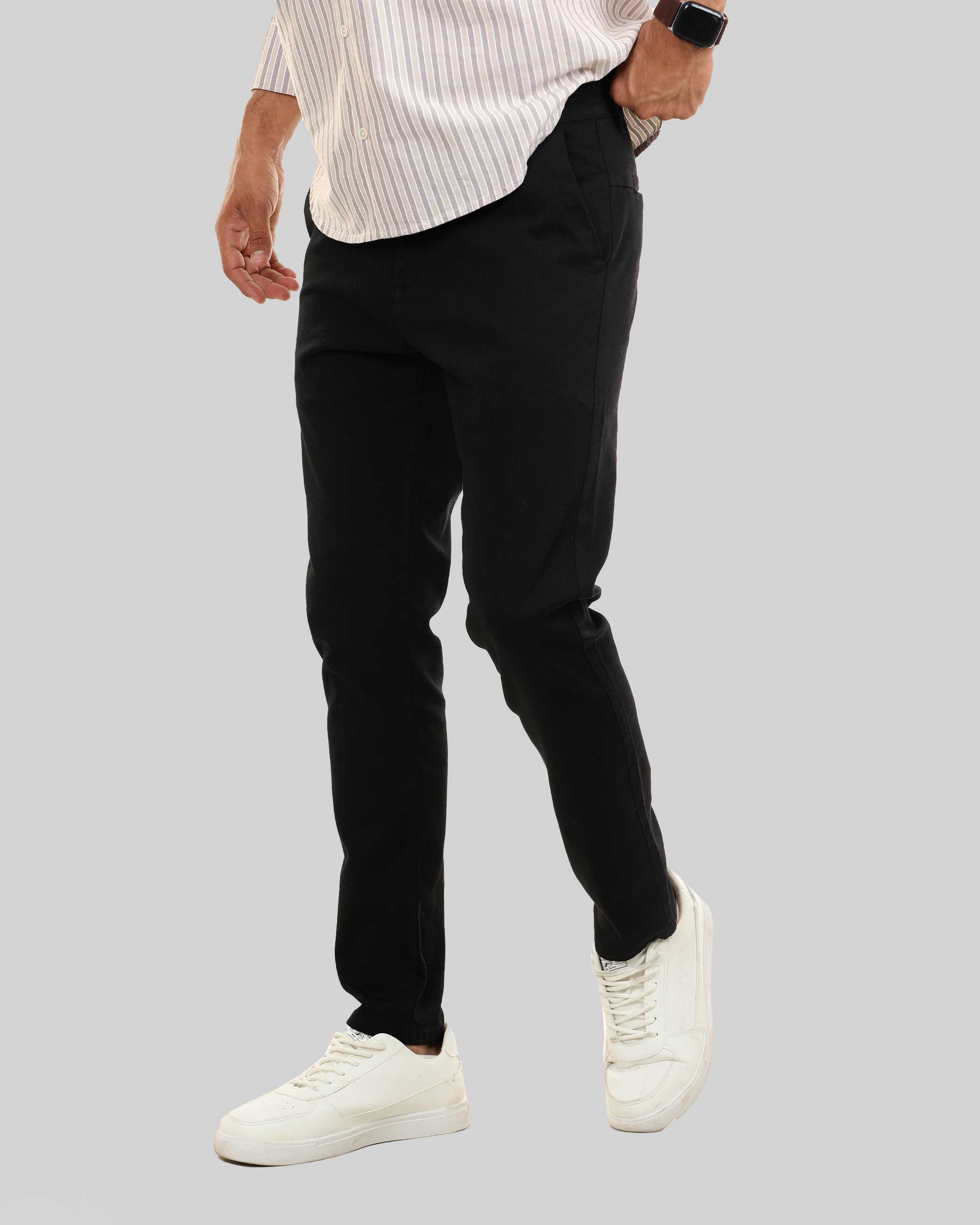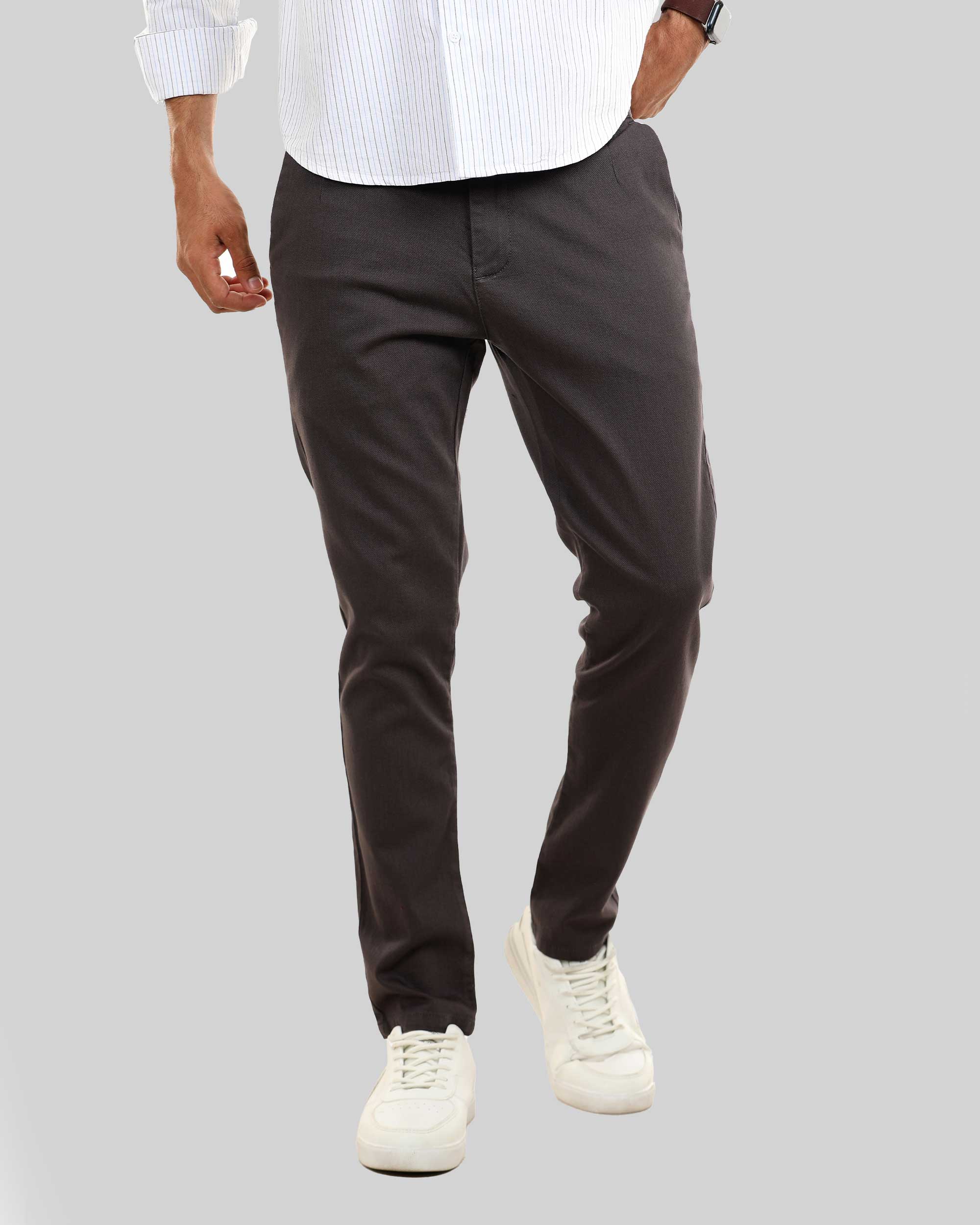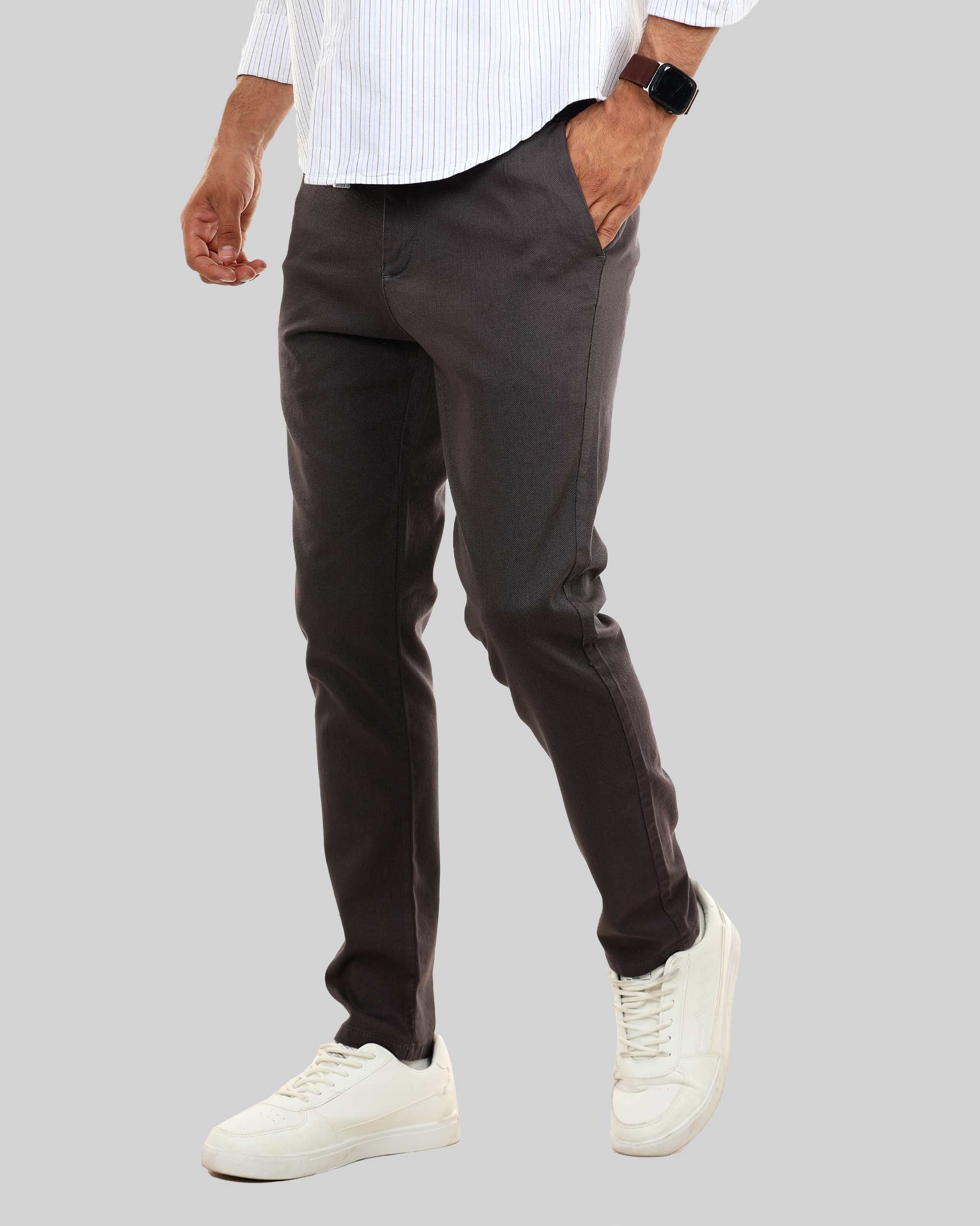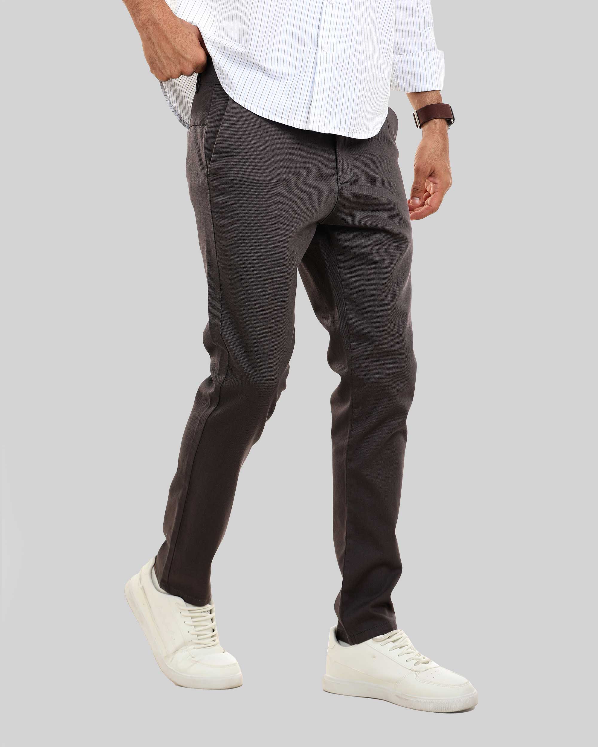 بنطلون تشينو كلاسيك، مصنوع من قماش جبردين بيكا، وجيوب خلفية وسحاب وزر علوي للإغلاق.