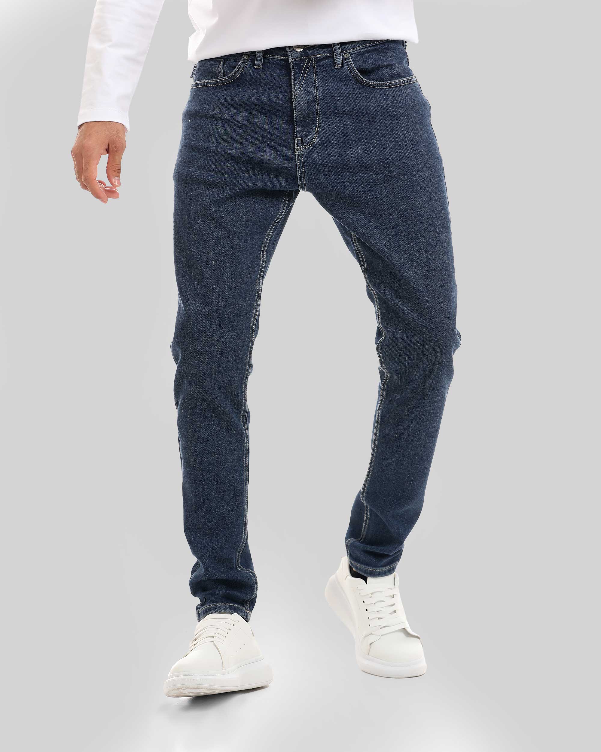 بنطلون جينز بقصه ضيقه، بخمسة جيوب، بتأثير باهت وأزرار للإغلاق.