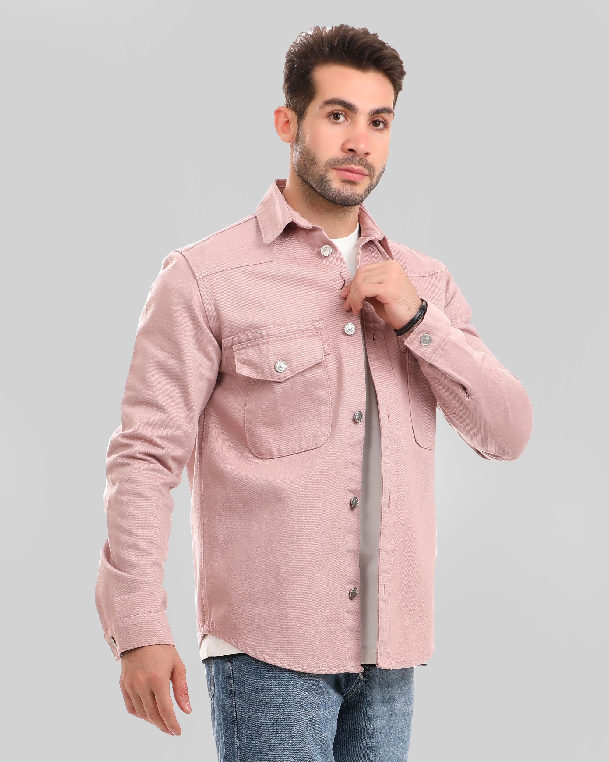 جاكيت جينز بقصه ضيقه أنيقة مصممة على شكل قميص لإطلالة عصرية. مثالية للارتداء فوق ملابس أخرى في الطقس البارد.