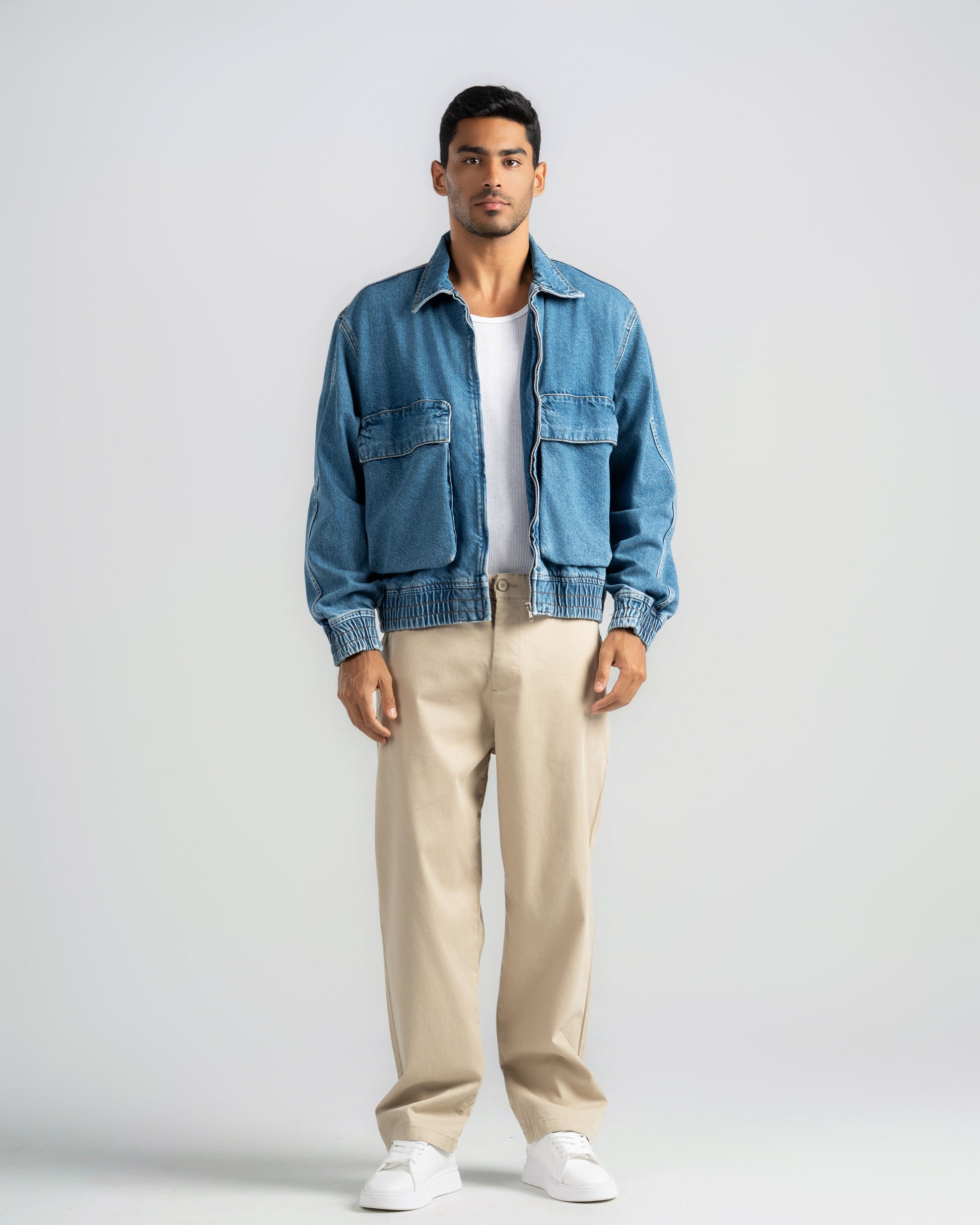 سترة جينز عصرية ومريحة بسحاب أمامي وجيبين. مثالية لفصل الشتاء وتضفي لمسة أنيقة.