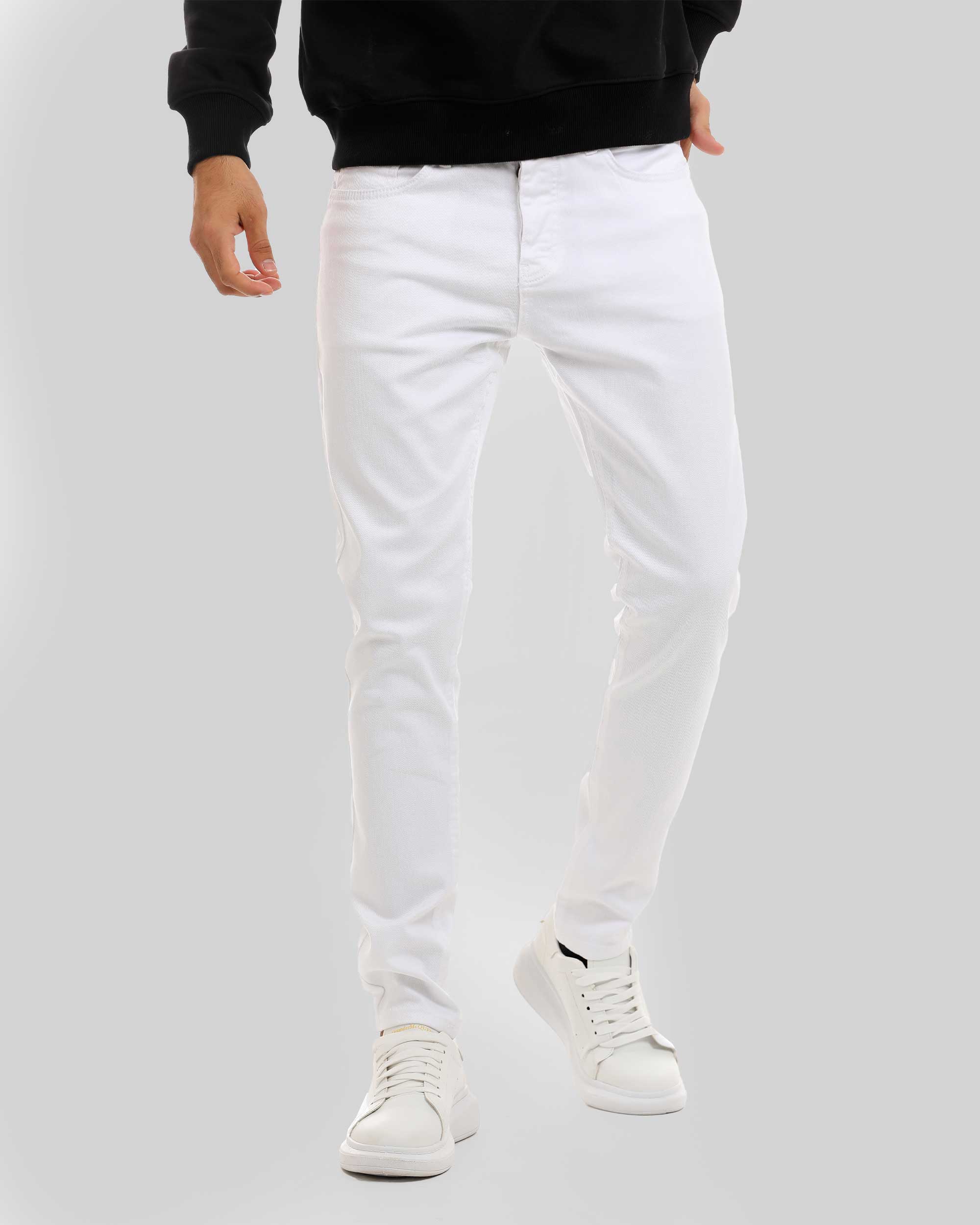 بنطلون جبردين بقصه ضيقه ، بخمسة جيوب وأزرار للإغلاق.