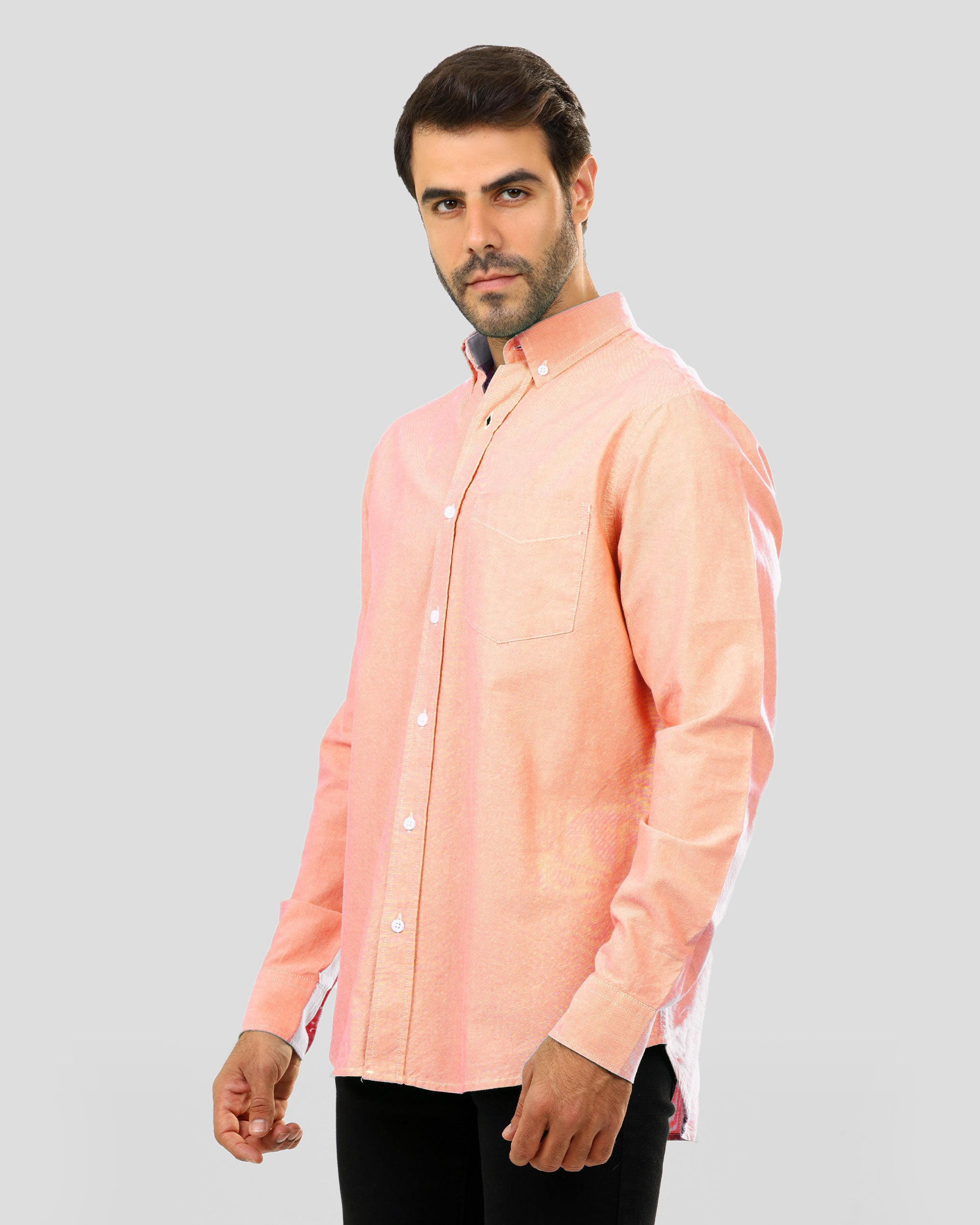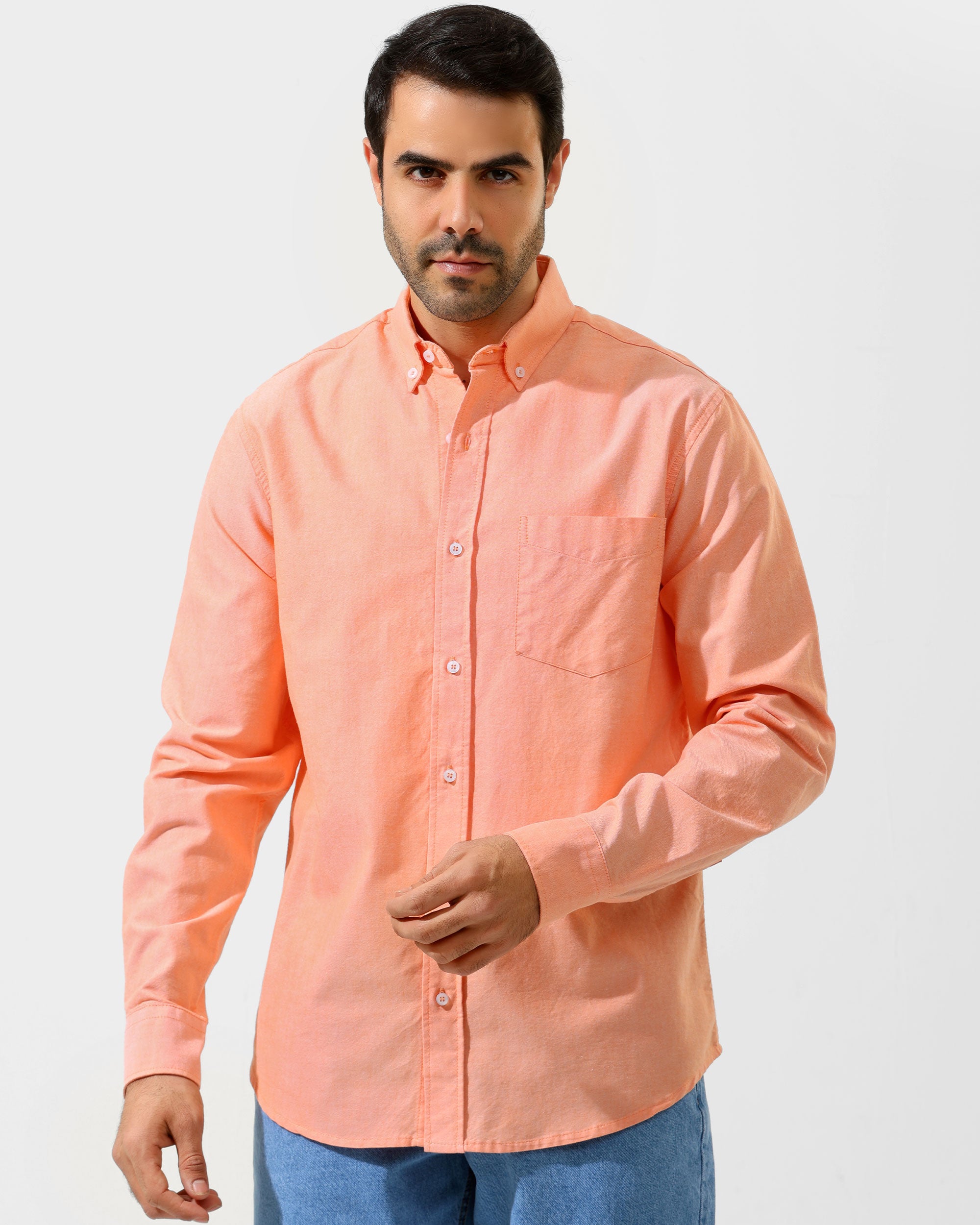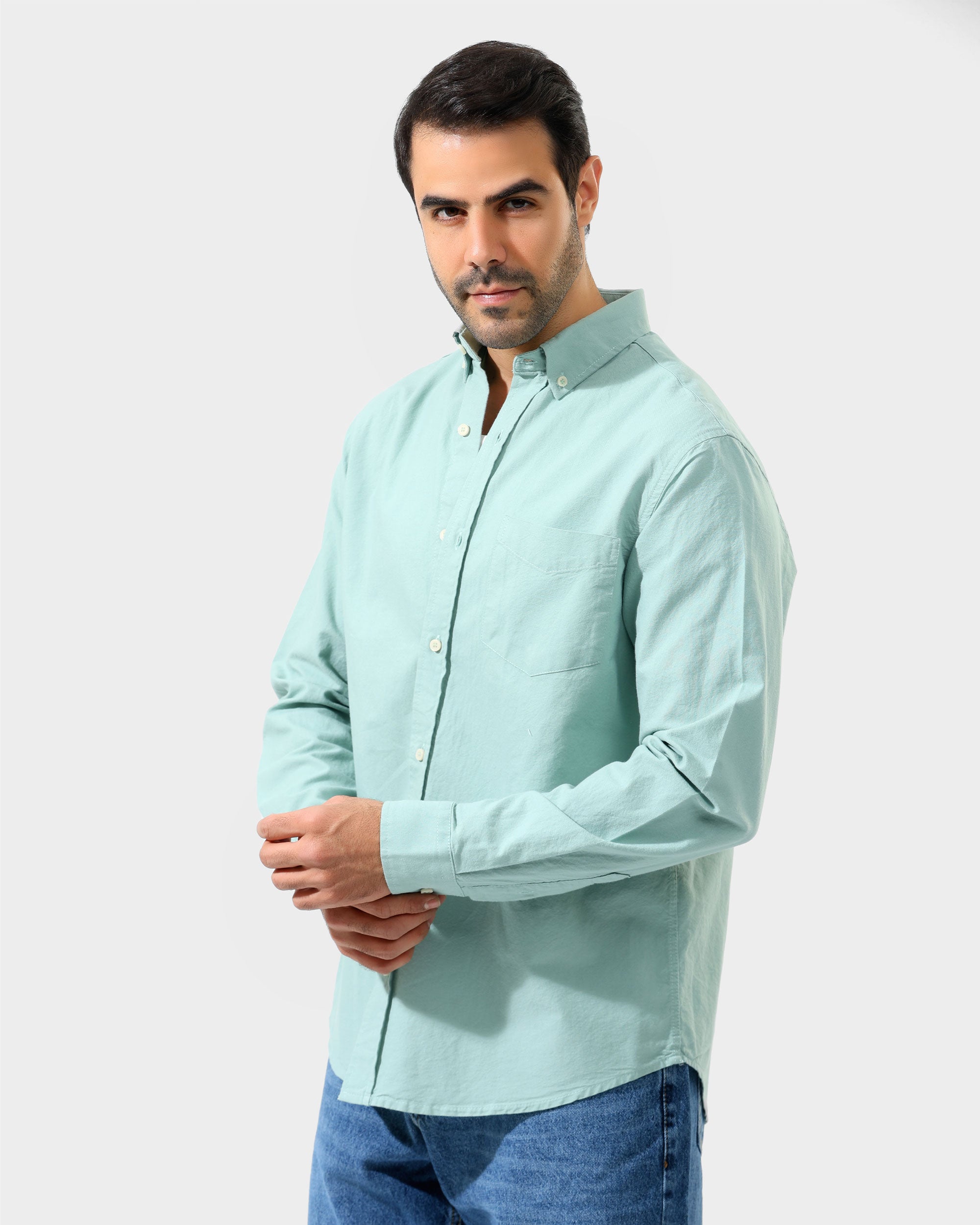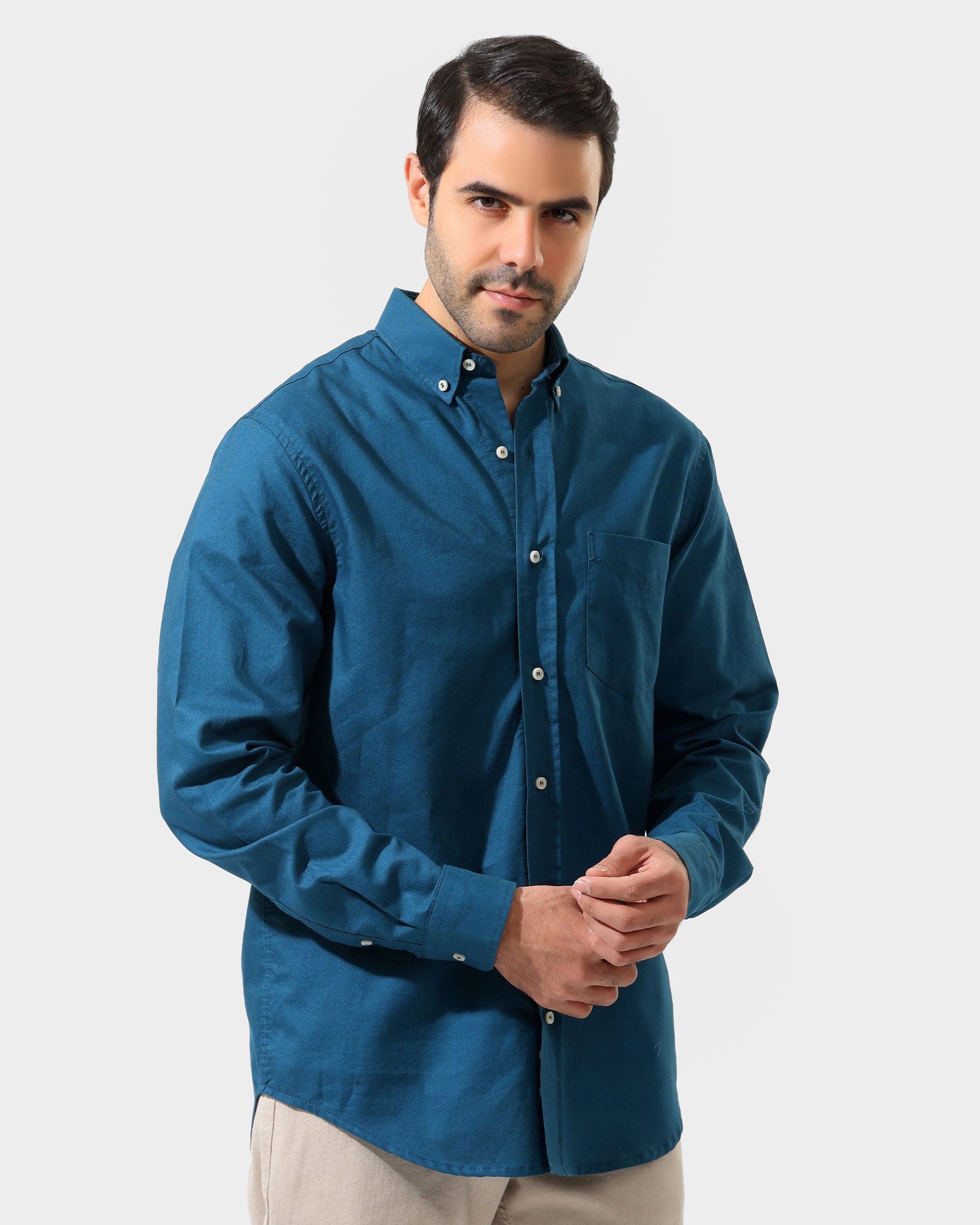 Regular fit shirt featuring a buttoned collar and long sleeves with buttoned cuffs. Button-up front.