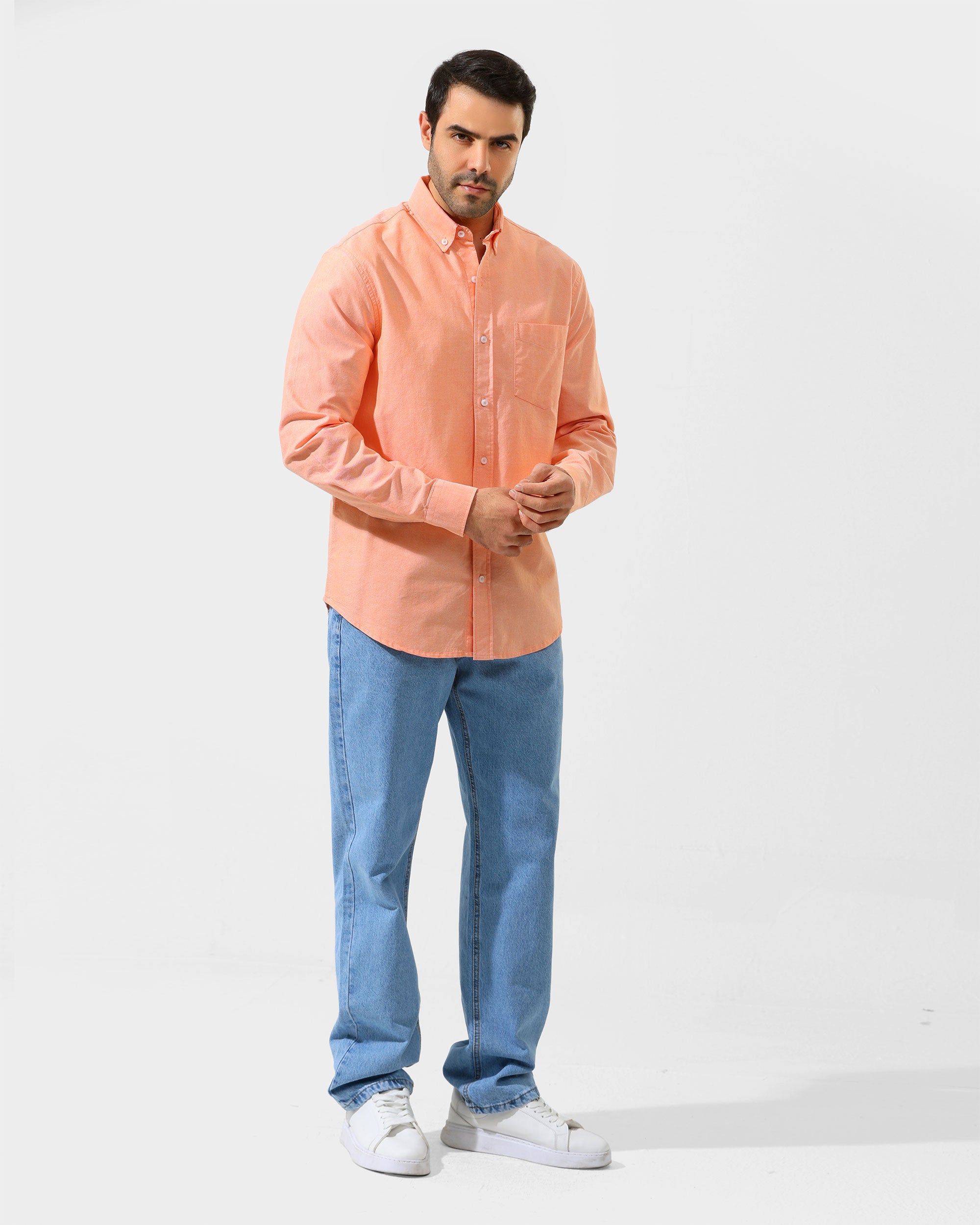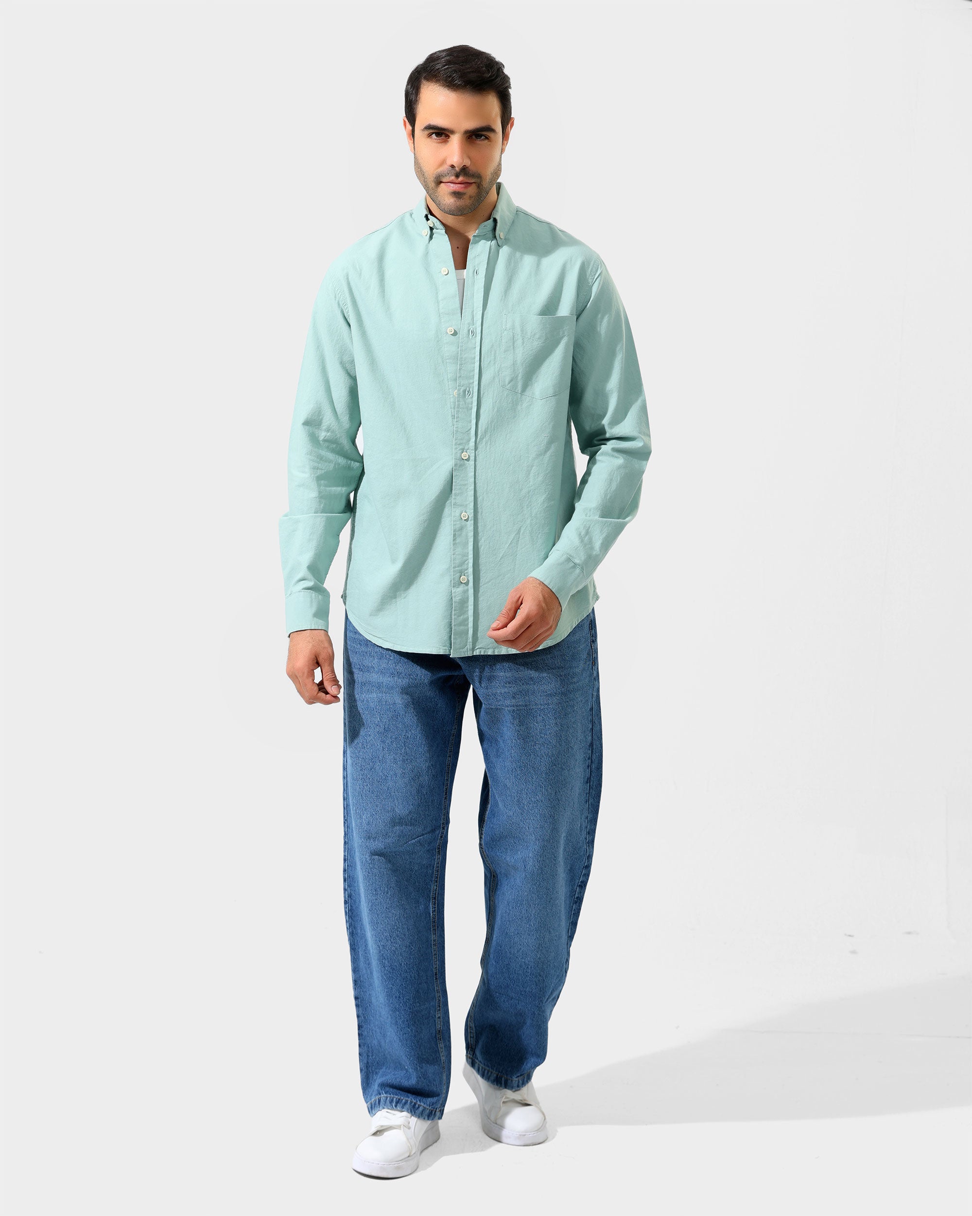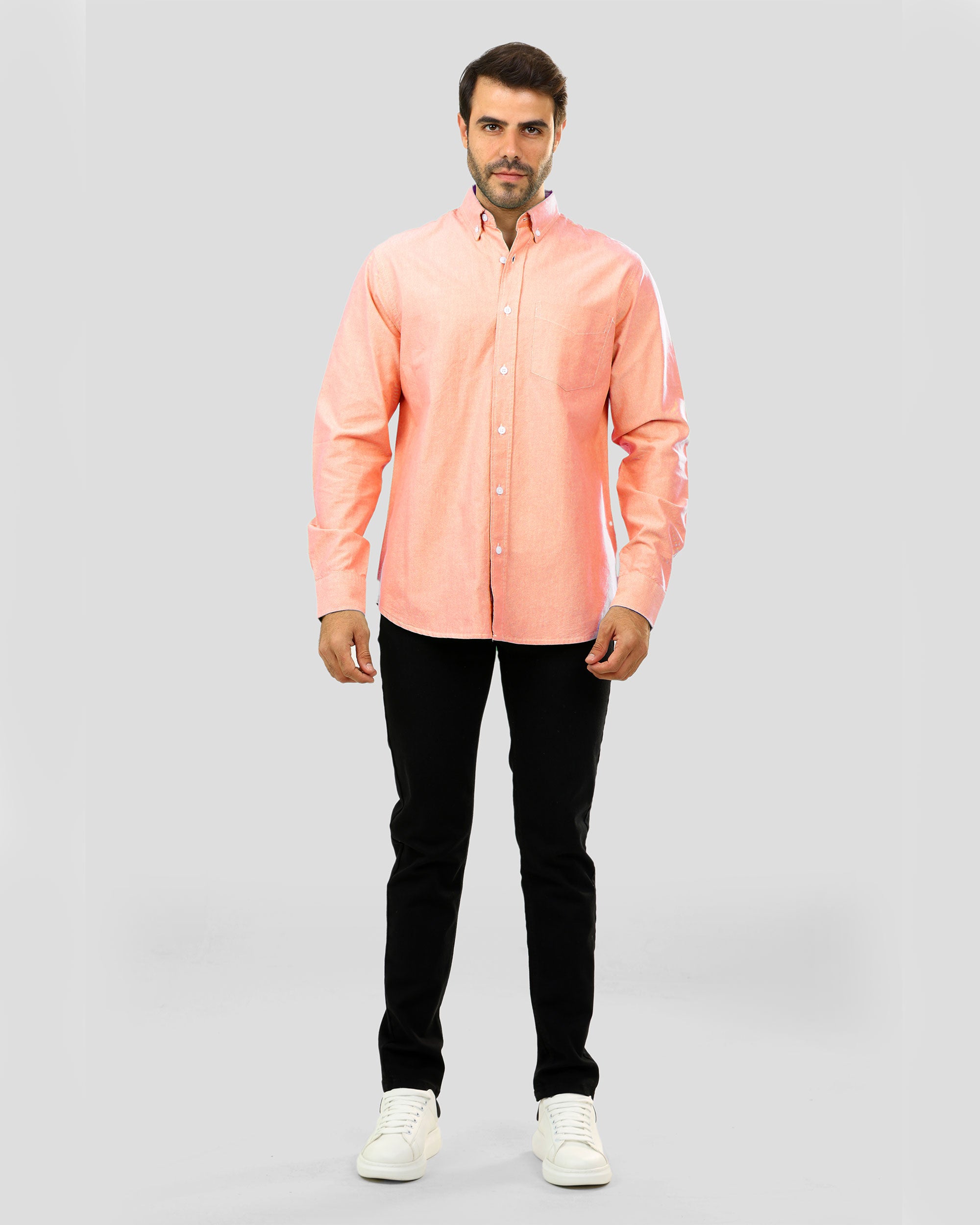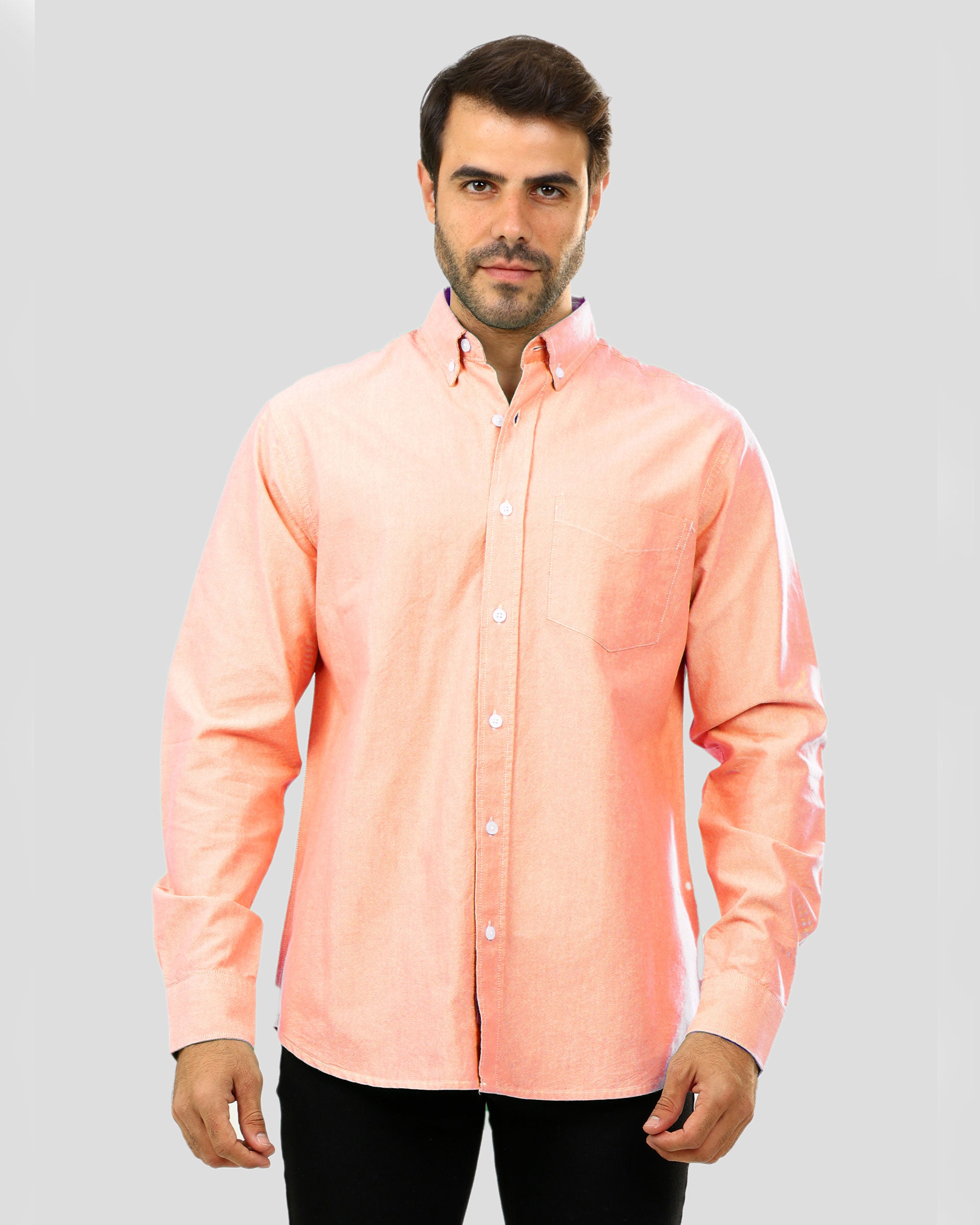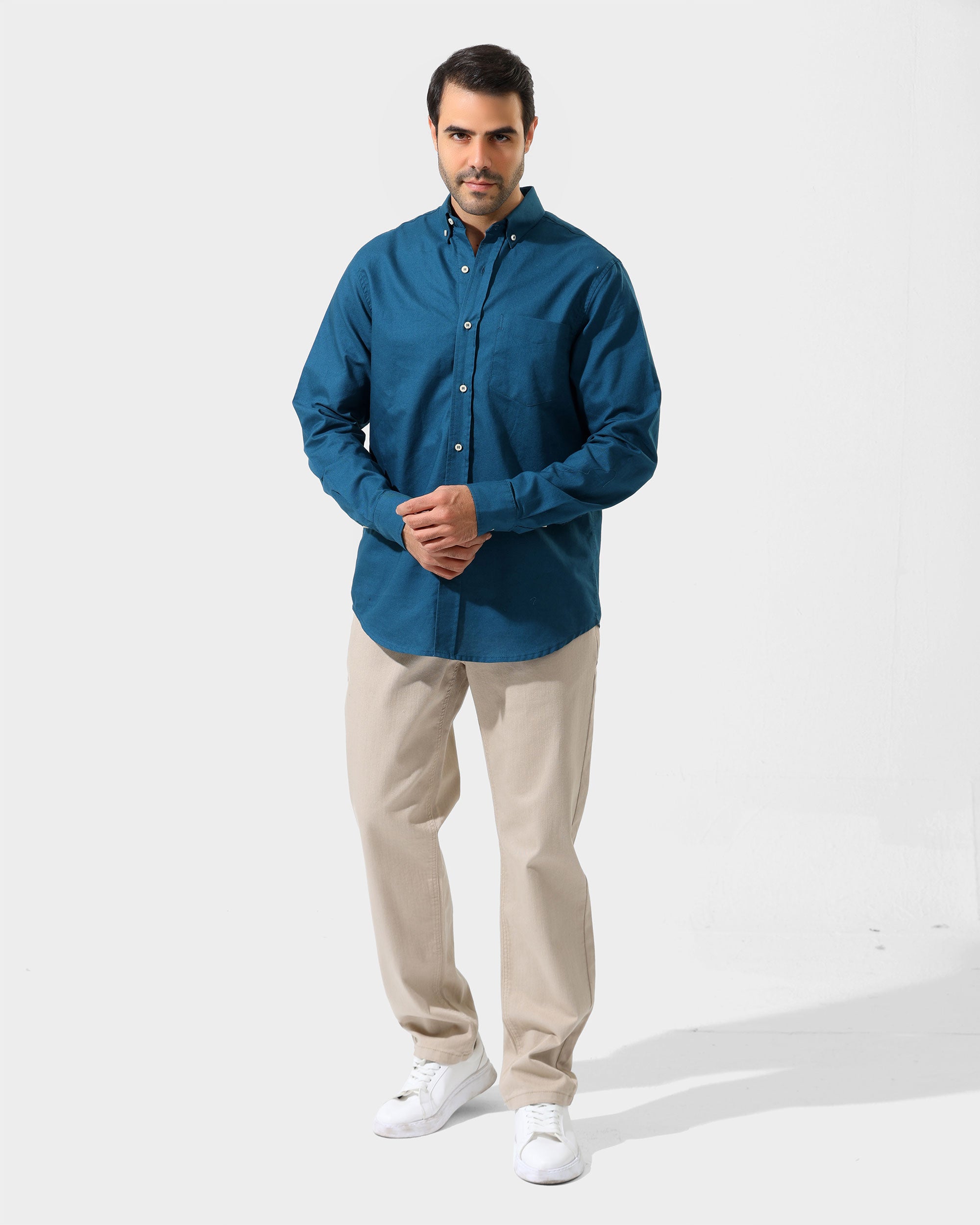 Regular fit shirt featuring a buttoned collar and long sleeves with buttoned cuffs. Button-up front.