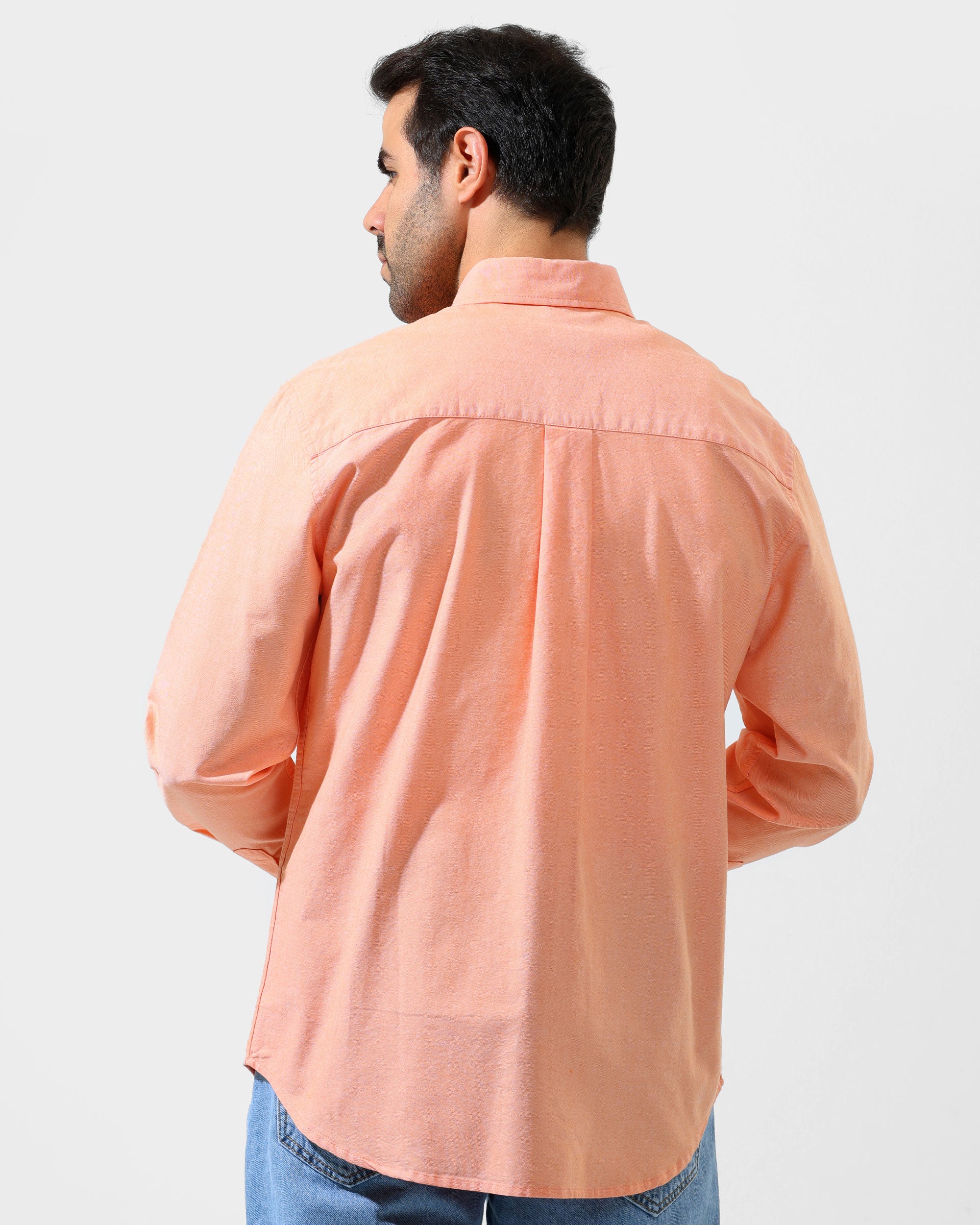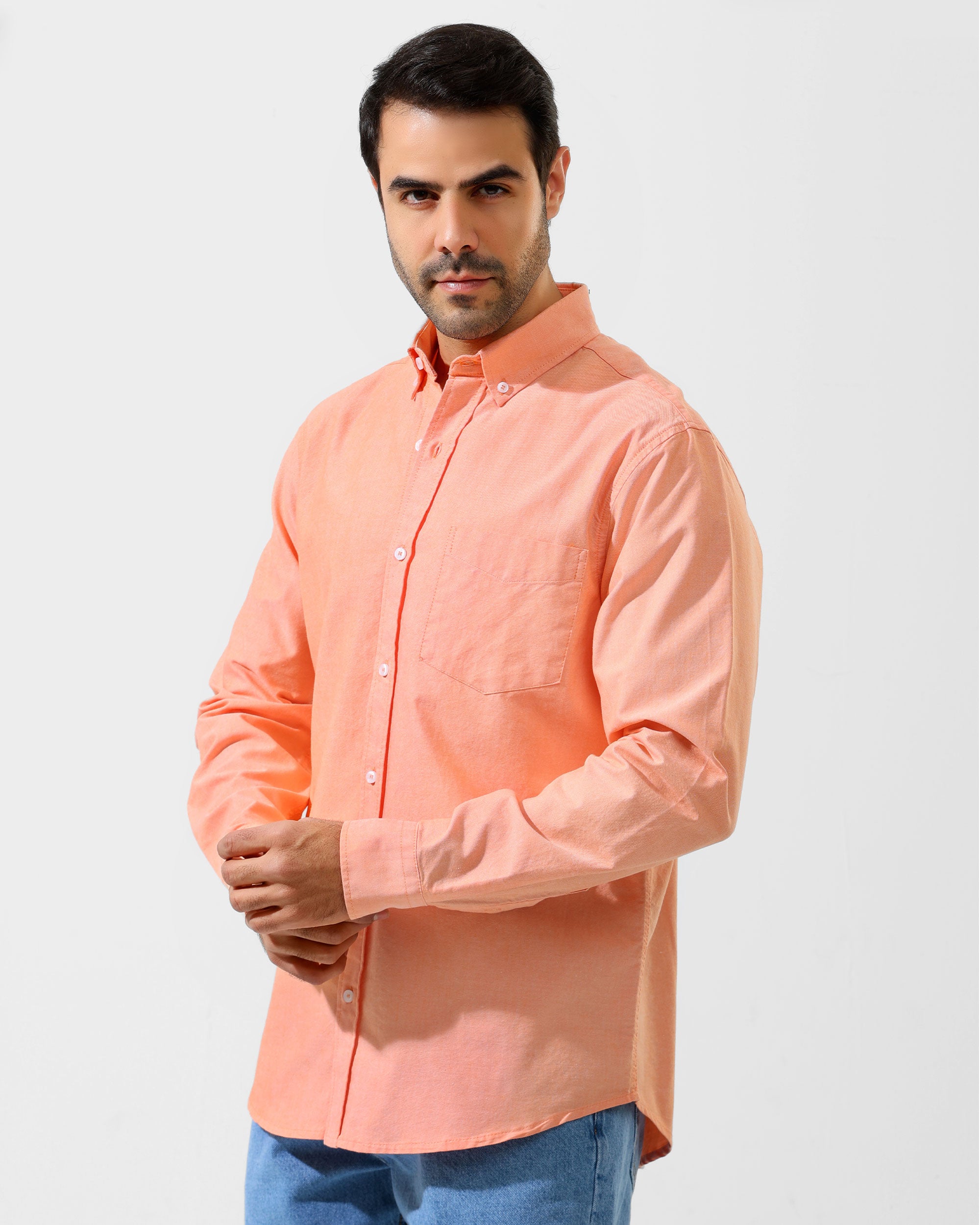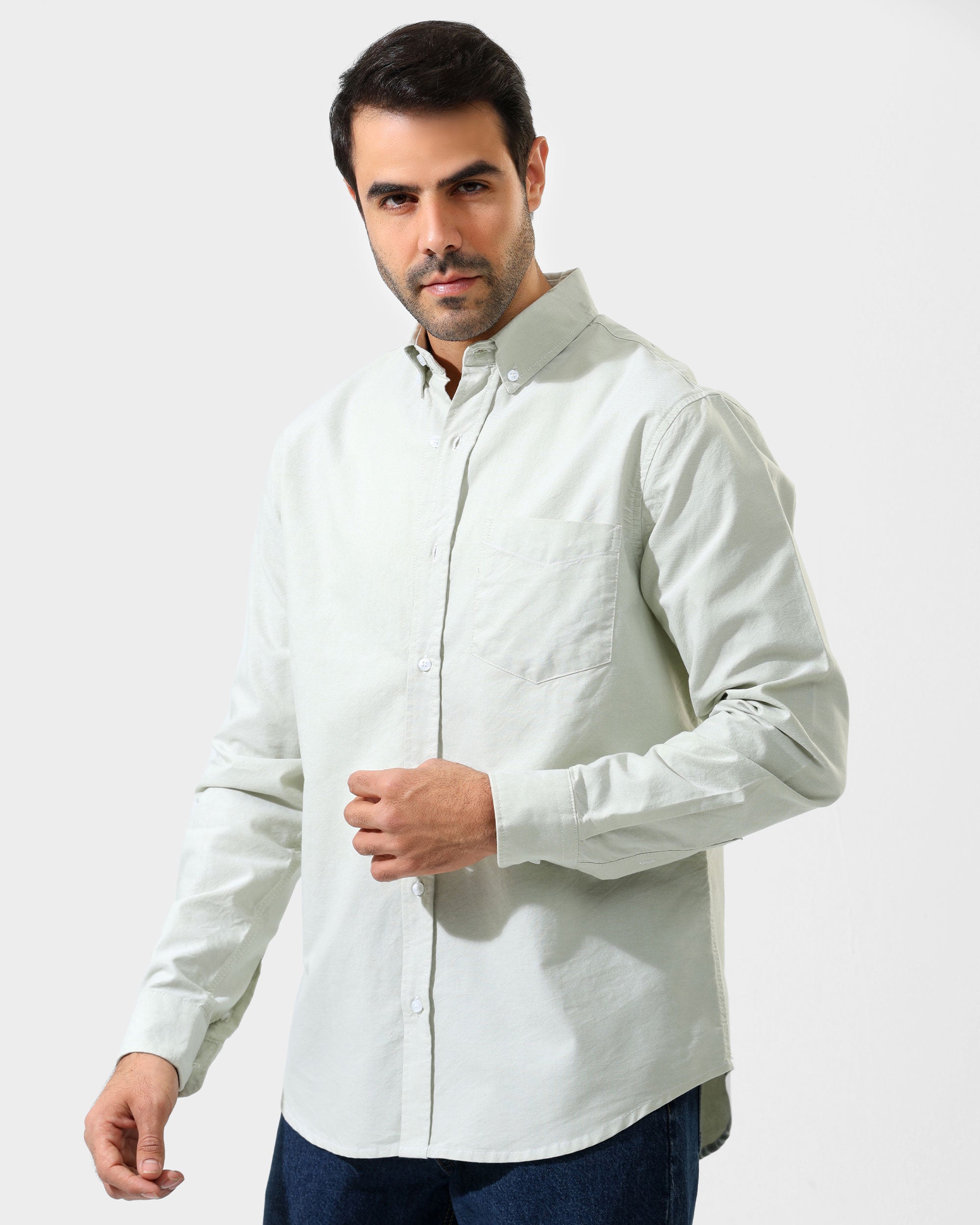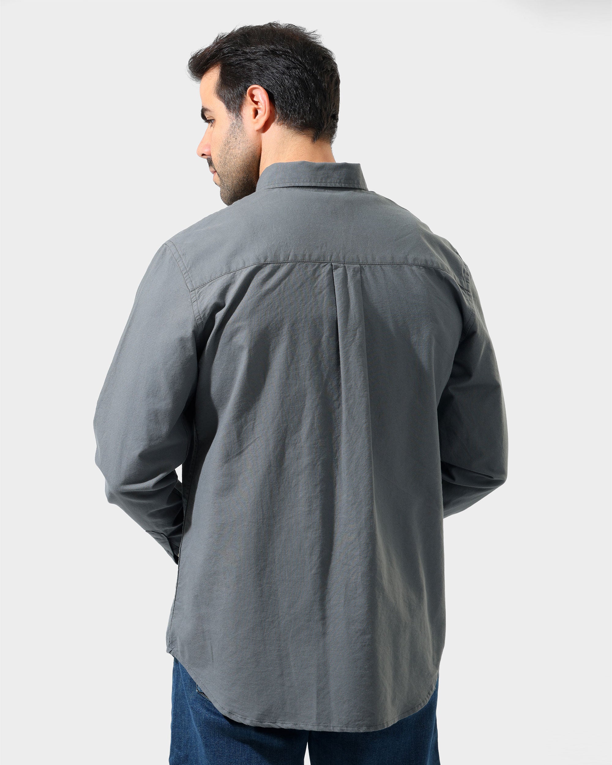 Regular fit shirt featuring a buttoned collar and long sleeves with buttoned cuffs. Button-up front.
