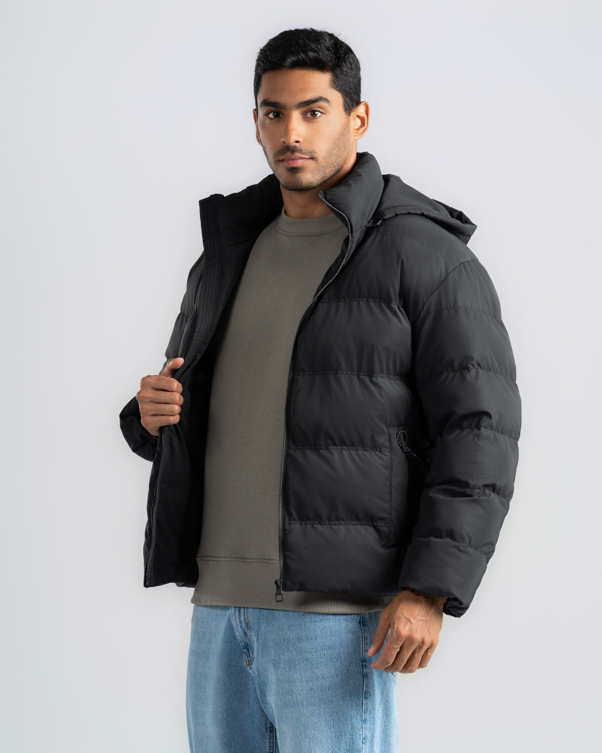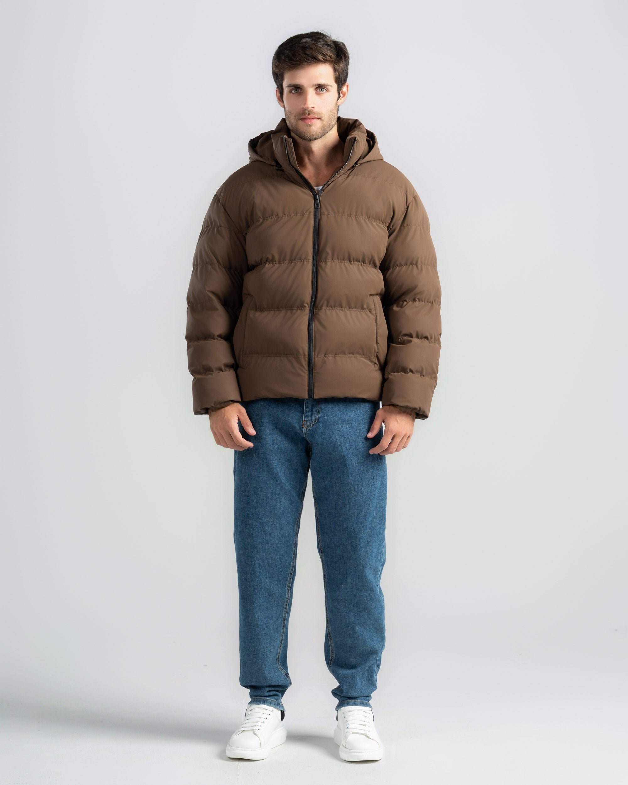 This hooded puffer jacket combines functional warmth with a sleek design, featuring insulated padding that retains heat even in cold conditions. Its adjustable hood offers additional protection against wind and rain, making it ideal for outdoor wear. Crafted for durability and comfort, this jacket provides excellent insulation without bulk, allowing freedom of movement while keeping you cozy throughout the day.