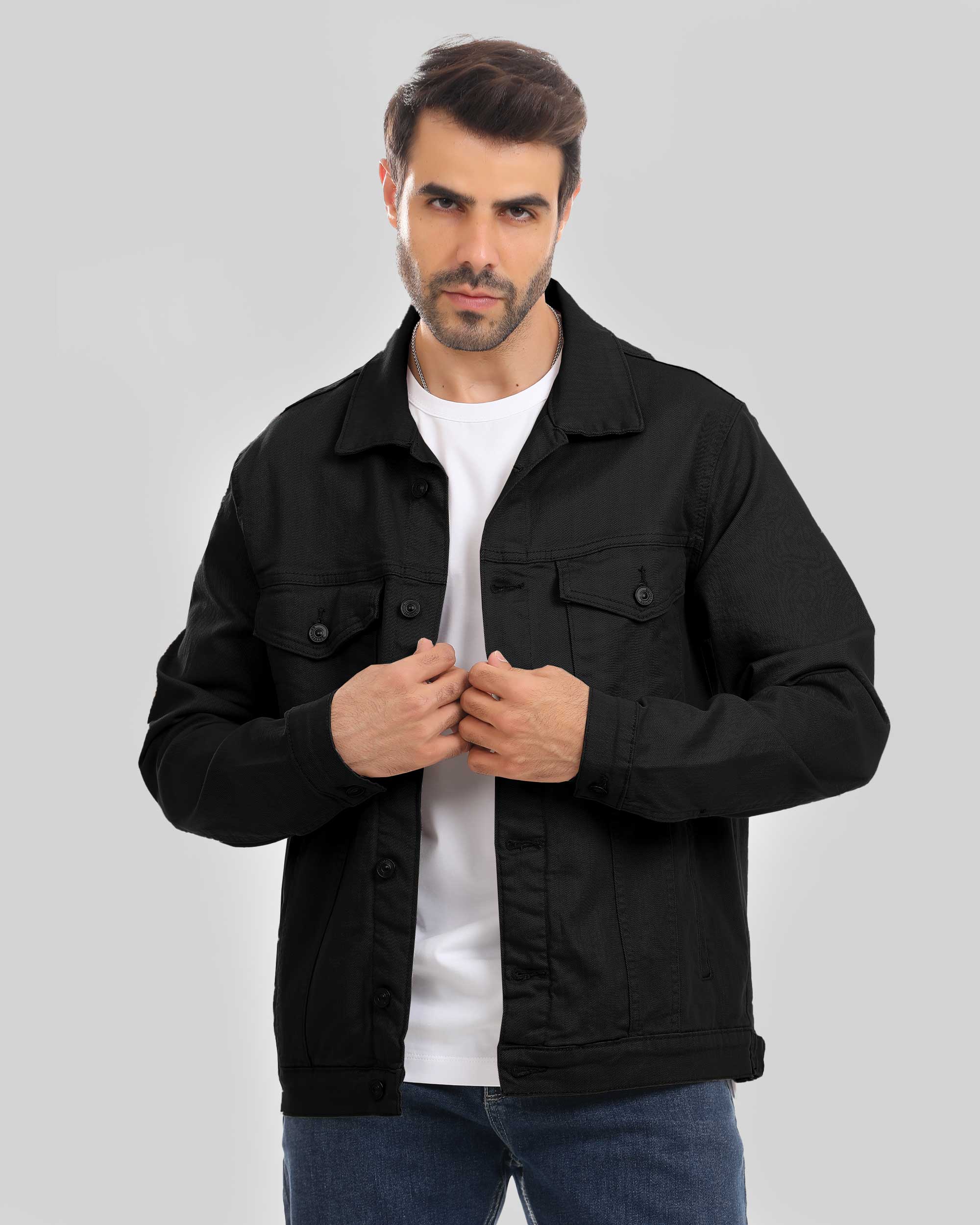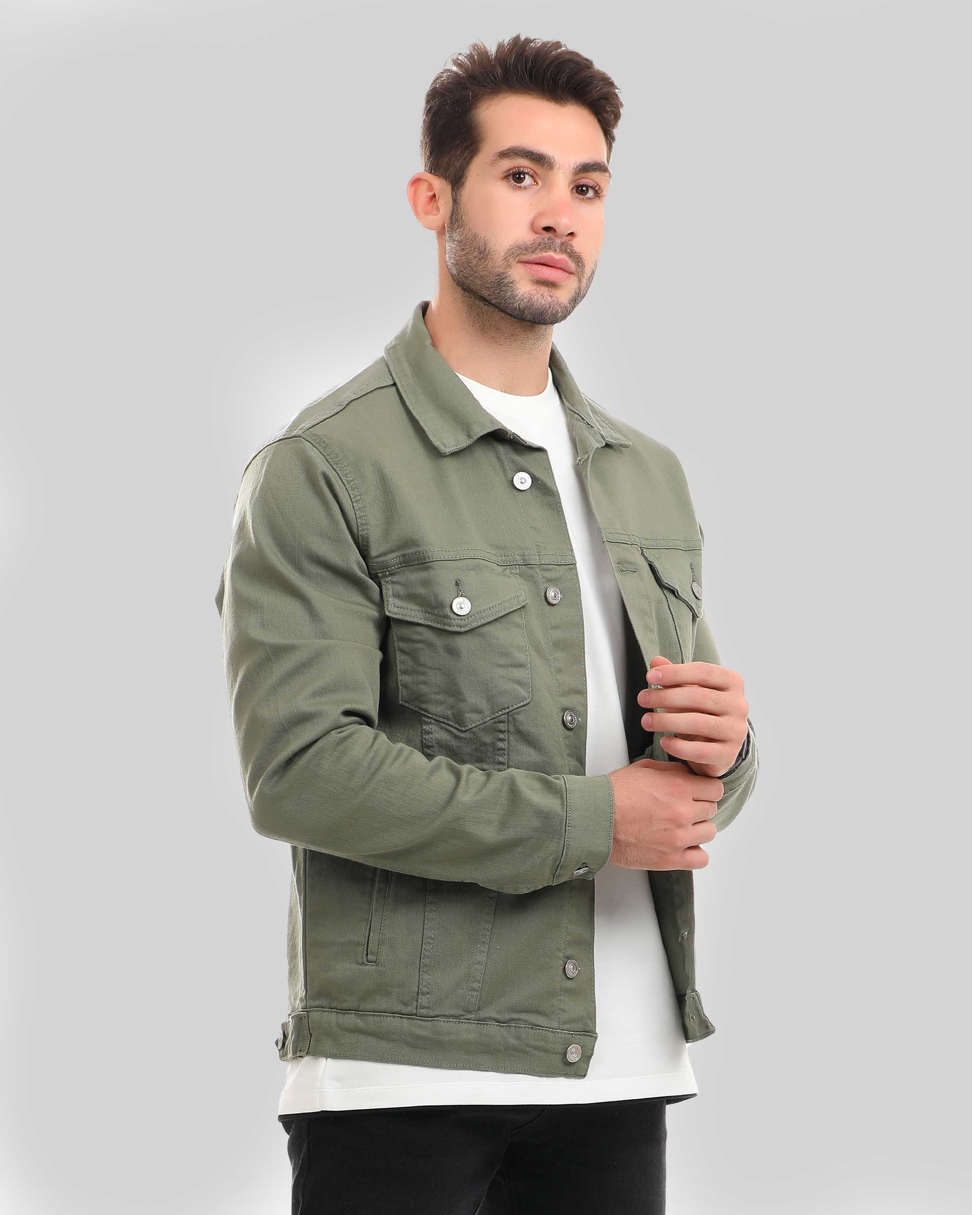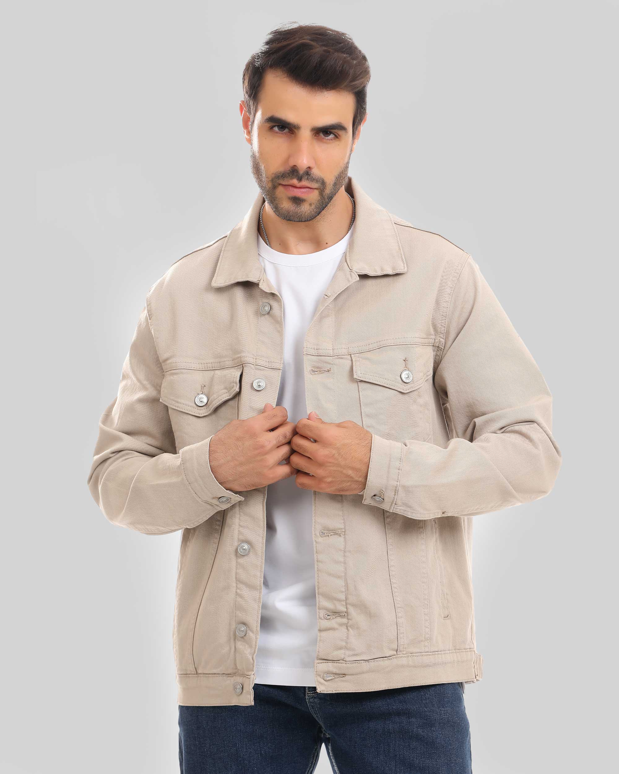 Collared jacket with long sleeves and buttoned cuffs. Flap pockets on the chest and welt hip pockets. Button-up front.