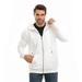 This solid hoodie features a full zip and two pockets, combining style with functionality.