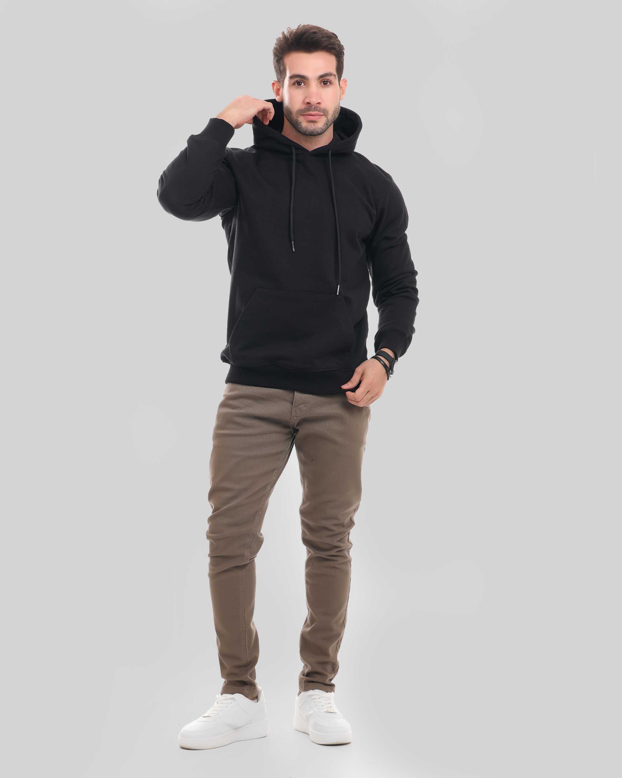 This solid hoodie with a hood provides both style and comfort.